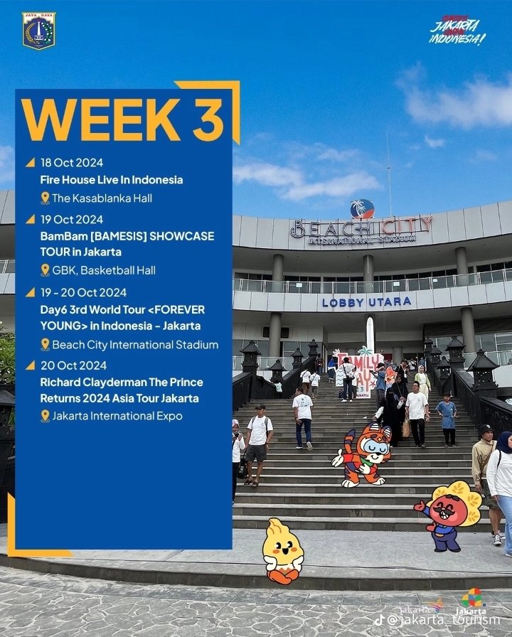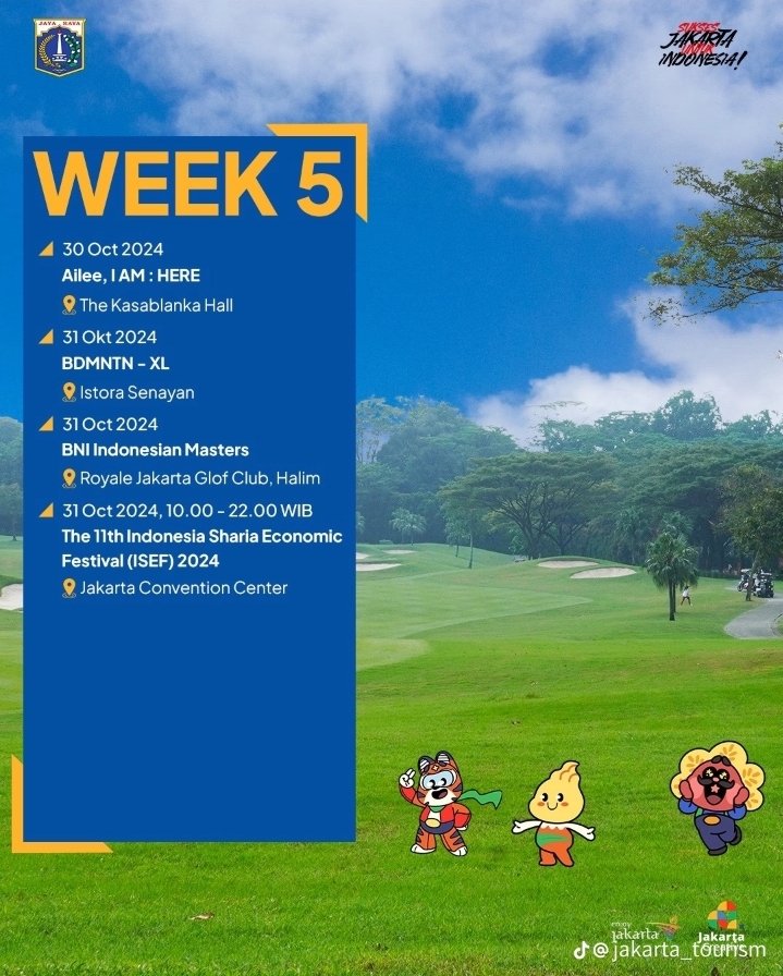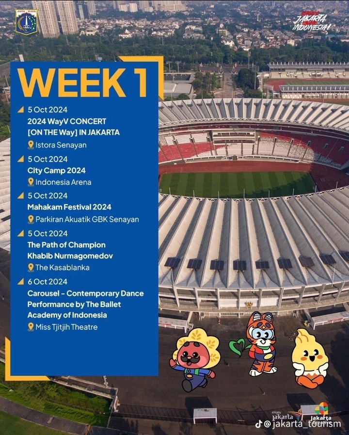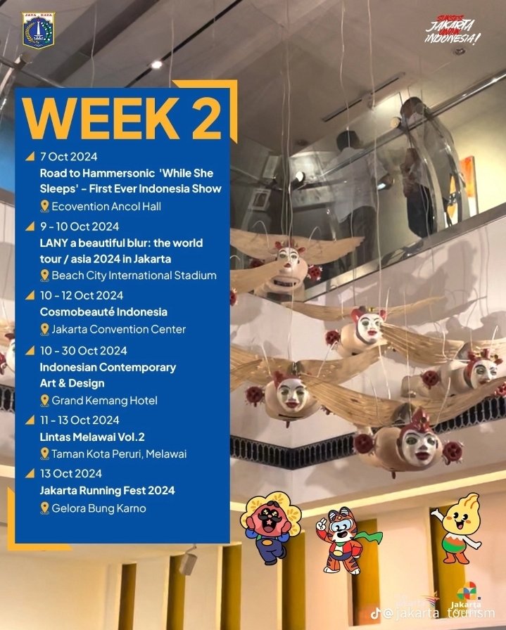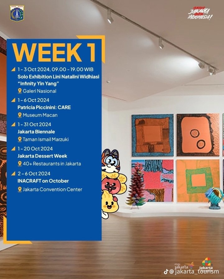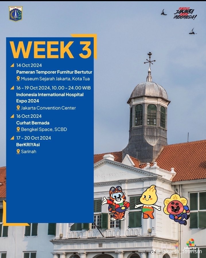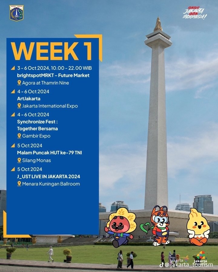 Catatan di atas dari media sosial tiktok Jakarta Tourism. Berikut juga infografis event selama bulan Oktober di Jakarta yang dikemas dalam paket Minggu Pertama sampai kelima. Berderet kegiatan sejak pukul 09.00 tanggal 1 Oktober sampai dengan pukul 00.00 tanggal 31 Oktober nanti.